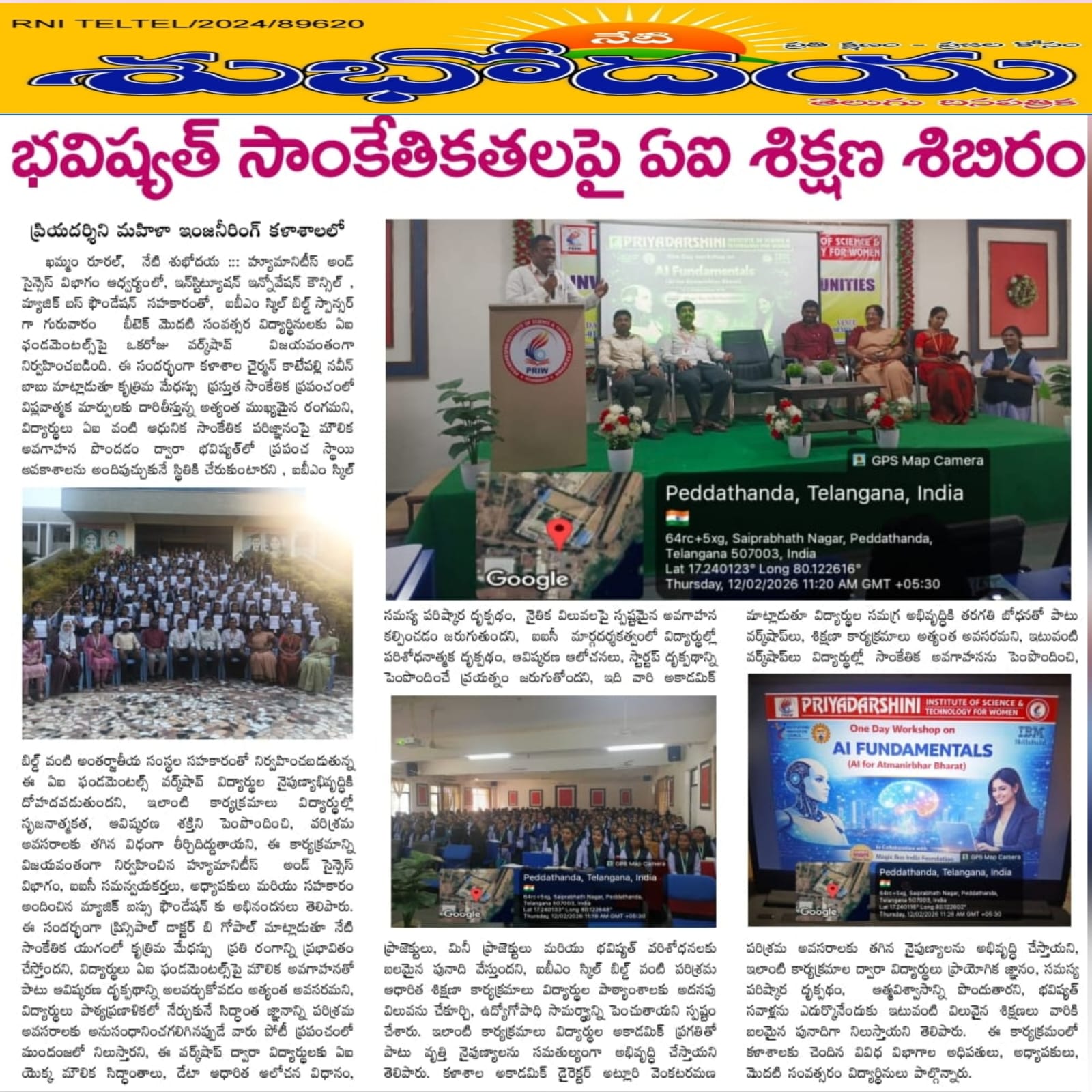 A One-Day Workshop on AI Fundamentals was conducted on 12-02-2026 at Priyadarshini Institute of Science and Technology for Women under the IBM SkillsBuild initiative in collaboration with IBM.