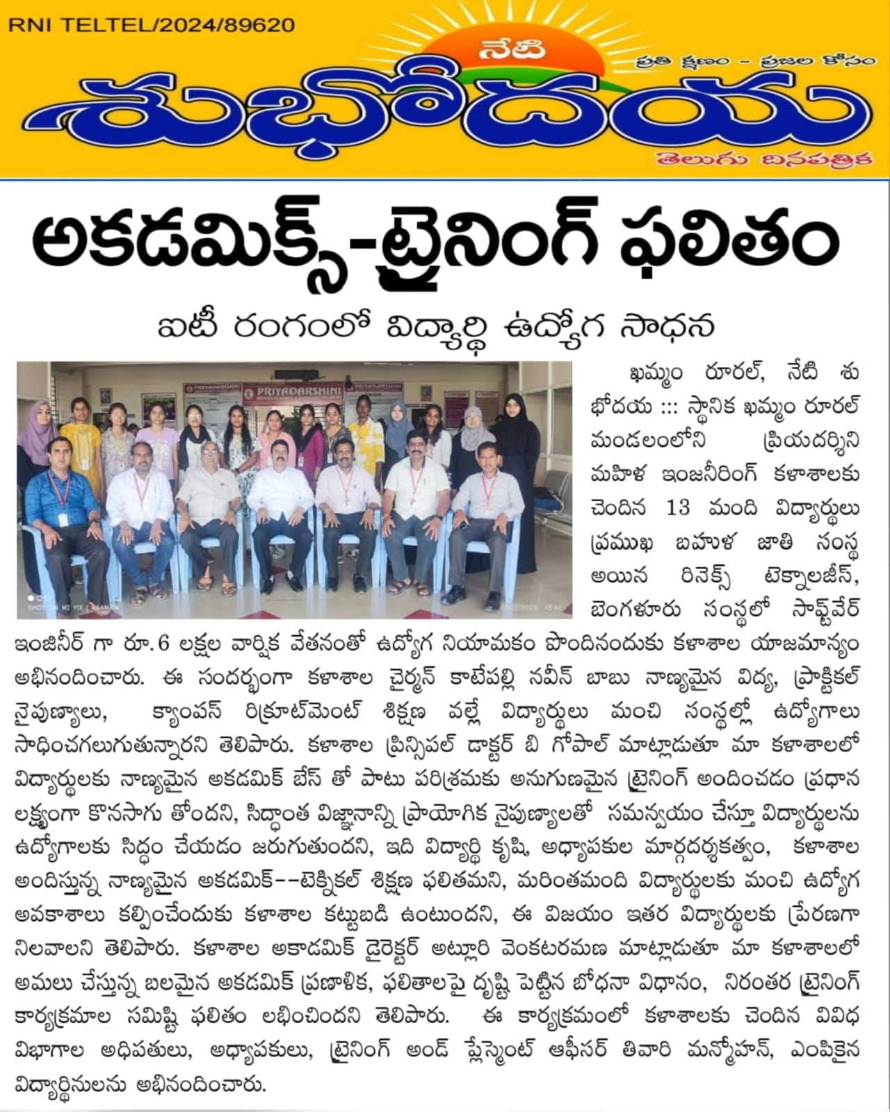 A Placement Drive was conducted by Rinex Technologies at Priyadarshini Institute of Science and Technology for Women to provide career opportunities for students.